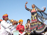 The main attraction of this festival is the folk music centered on the romantic lifestyle of Rajasthan's rulers. The music and dance of the Marwar region is the main theme of this festival. The folk dancers and singers assemble at the festival and provide lively entertainment. These folk artists give others a peek into the days of yore, of battles and of the heroes who still live on through their songs.